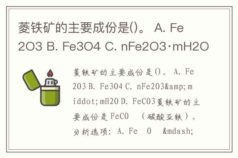 菱铁矿的主要成份是()。 A. Fe2O3 B. Fe3O4 C. nFe2O3·mH2O D. FeCO3