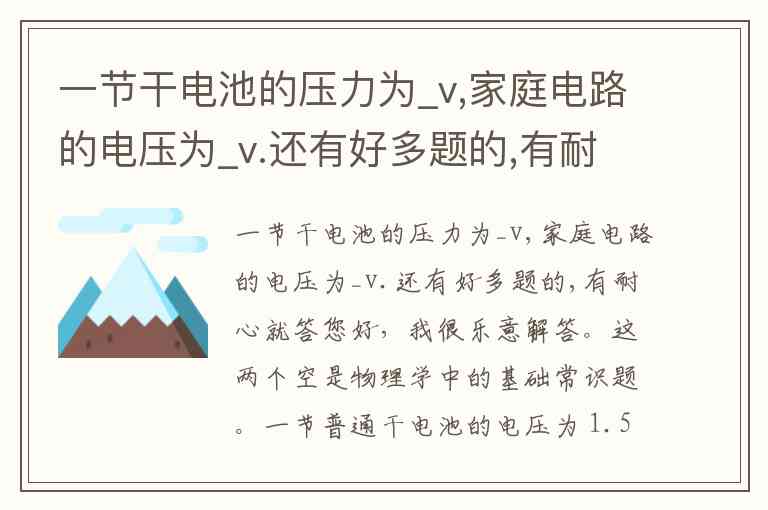 一节干电池的压力为_v,家庭电路的电压为_v.还有好多题的,有耐心就答