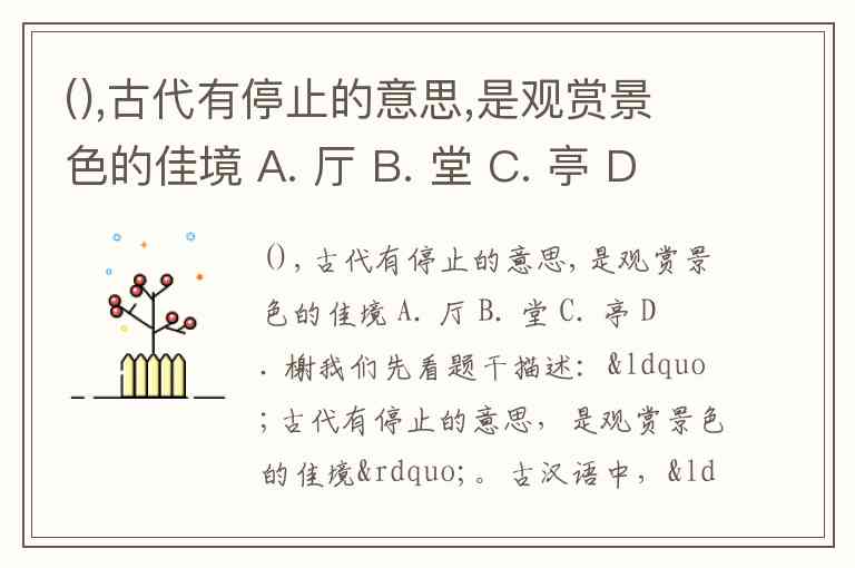 (),古代有停止的意思,是观赏景色的佳境 A. 厅 B. 堂 C. 亭 D. 榭