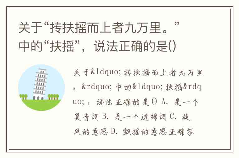 关于“抟扶摇而上者九万里。”中的“扶摇”,说法正确的是() A. 是一个复音词 B. 是一个连绵词 C. 旋风的意思 D. 飘摇的意思