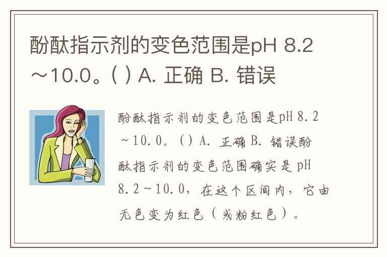 酚酞指示剂的变色范围是pH 8.2~10.0。( ) A. 正确 B. 错误