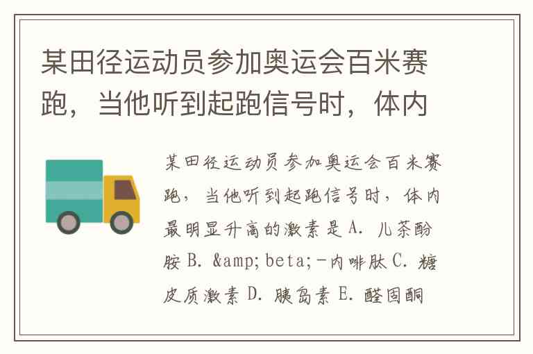 某田径运动员参加奥运会百米赛跑,当他听到起跑信号时,体内最明显升高的激素是 A. 儿茶酚胺 B. β-内啡肽 C. 糖皮质激素 D. 胰岛素 E. 醛固酮