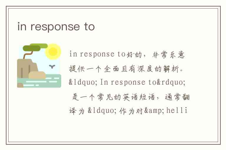 “In response to” 是一个常见的英语短语,通常翻译为 “作为对…的回应”、“针对…” 或 “应…的要求”。它的核心在于表明后续的动作或陈述是由某个先前的事件、陈述、问题、请求或情况所引发的。
