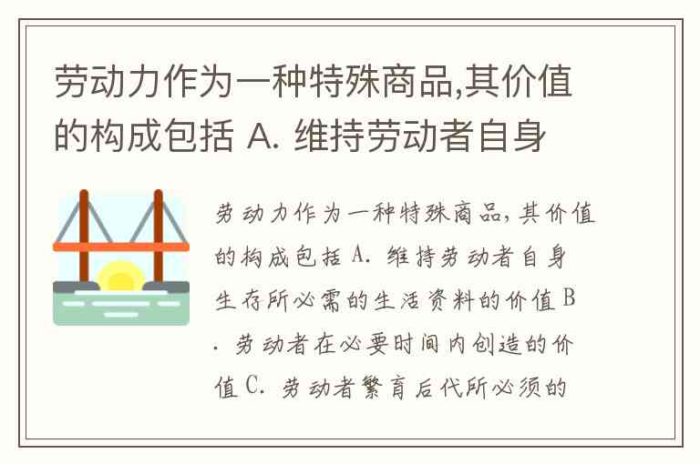 劳动力作为特殊商品,其价值的构成根据马克思主义政治经济学的原理,主要包括以下几个方面: