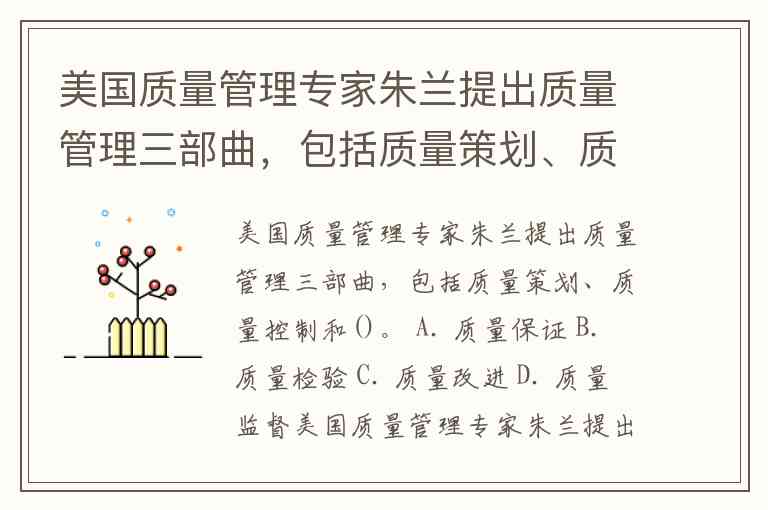 美国质量管理专家朱兰提出质量管理三部曲,包括质量策划、质量控制和()。 A. 质量保证 B. 质量检验 C. 质量改进 D. 质量监督