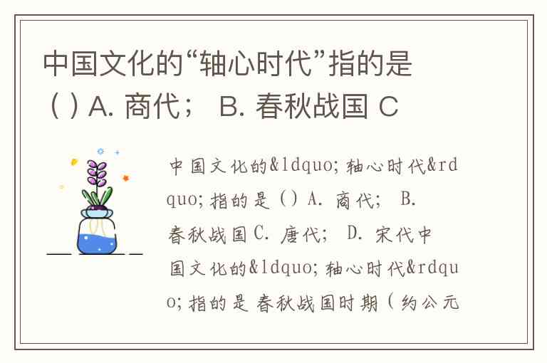 中国文化的“轴心时代”指的是 ( ) A. 商代; B. 春秋战国 C. 唐代; D. 宋代
