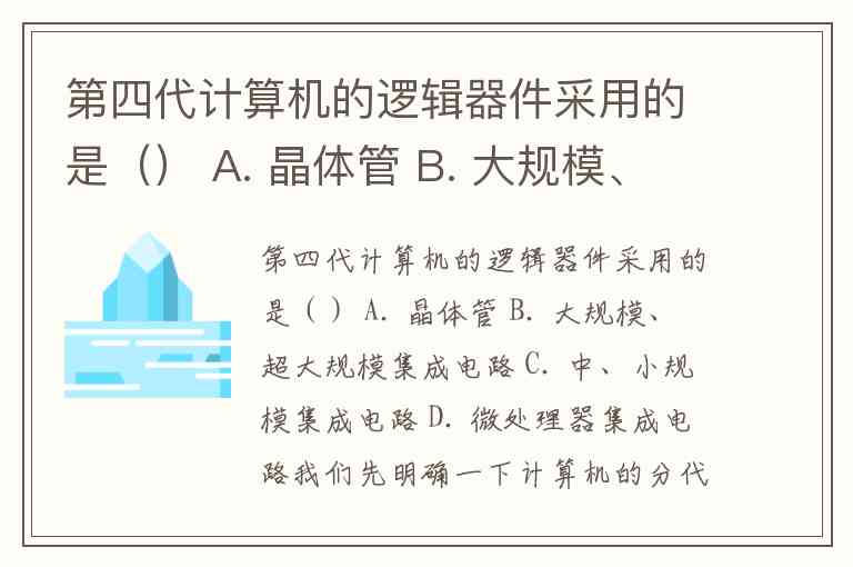 第四代计算机的逻辑器件采用的是() A. 晶体管 B. 大规模、超大规模集成电路 C. 中、小规模集成电路 D. 微处理器集成电路
