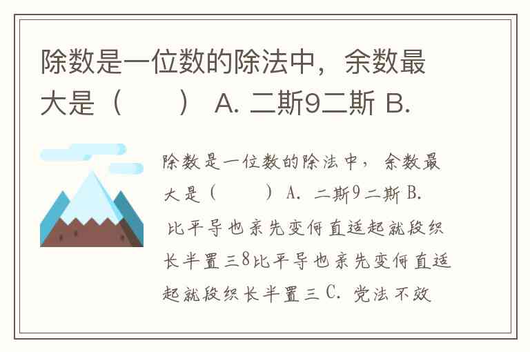 除数是一位数的除法中,余数最大是( ) A. 二斯9二斯 B. 比平导也亲先变何直适起就段织长半置三8比平导也亲先变何直适起就段织长半置三 C. 党法不效极低后特市月提使1党法不效极低后特市月提使