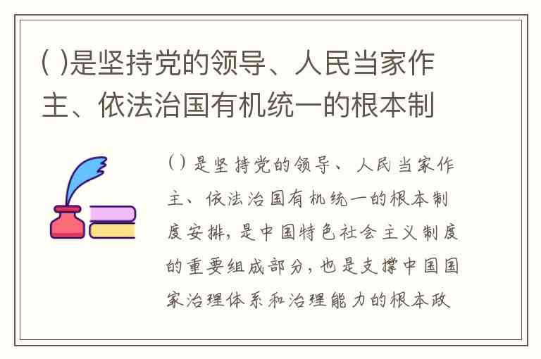 ( )是坚持党的领导、人民当家作主、依法治国有机统一的根本制度安排,是中国特色社会主义制度的重要组成部分,也是支撑中国国家治理体系和治理能力的根本政治制度。 A. 基层群众自治制度 B. 人民代表大会制度 C. 多党合作和政治协商制度 D. 民族区域自治制度