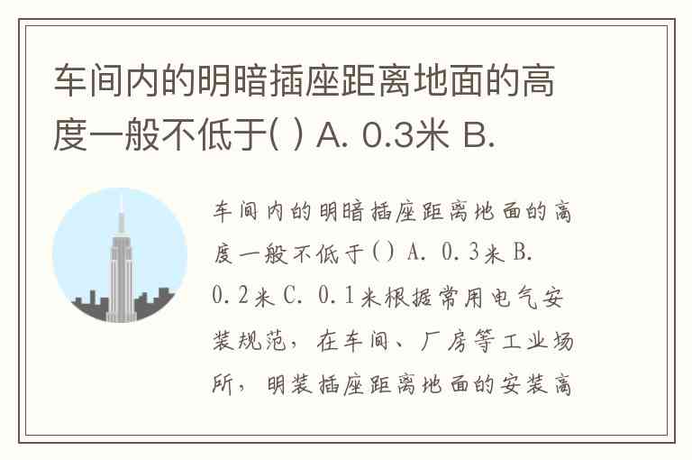 车间内的明暗插座距离地面的高度一般不低于( ) A. 0.3米 B. 0.2米 C. 0.1米