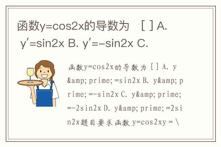 题目要求函数 y=cos2xy = \cos 2xy=cos2x 的导数。我们一步步求导。