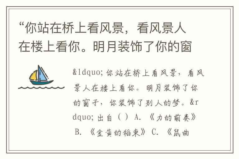 “你站在桥上看风景,看风景人在楼上看你。明月装饰了你的窗子,你装饰了别人的梦。”出自() A. 《力的前奏》 B. 《金黄的稻束》 C. 《鼠曲草》 D. 《断章》