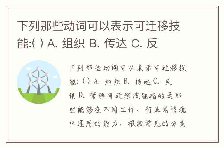 下列那些动词可以表示可迁移技能:( ) A. 组织 B. 传达 C. 反馈 D. 管理