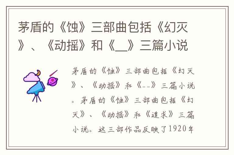 茅盾的《蚀》三部曲包括《幻灭》、《动摇》和《__》三篇小说。