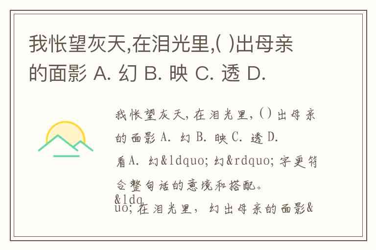 我怅望灰天,在泪光里,( )出母亲的面影 A. 幻 B. 映 C. 透 D. 看