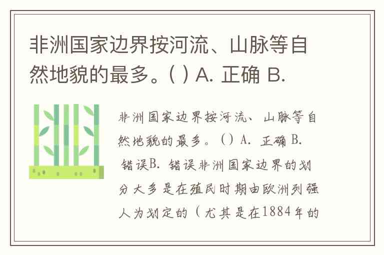 非洲国家边界按河流、山脉等自然地貌的最多。( ) A. 正确 B. 错误