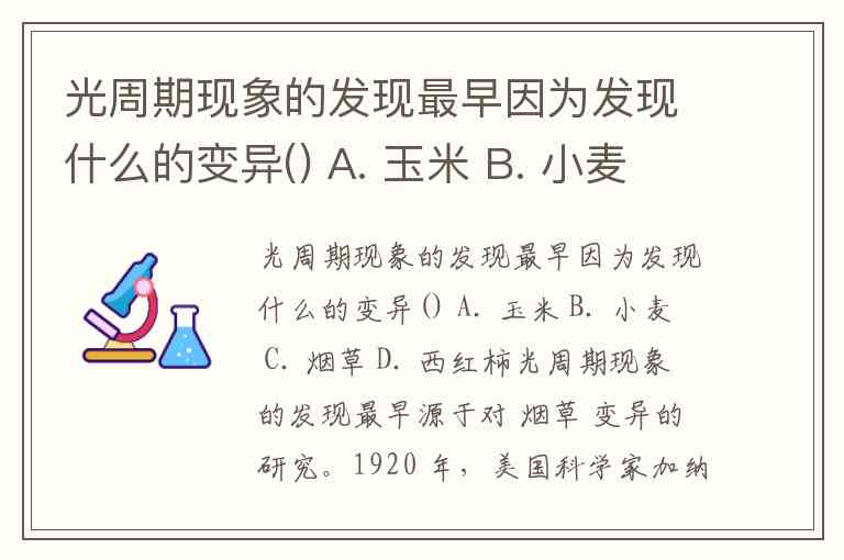 光周期现象的发现最早因为发现什么的变异() A. 玉米 B. 小麦 C. 烟草 D. 西红柿