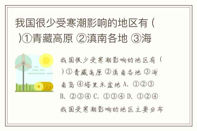 我国受寒潮影响的地区主要分布在中东部和北方,而以下地区较少受影响: