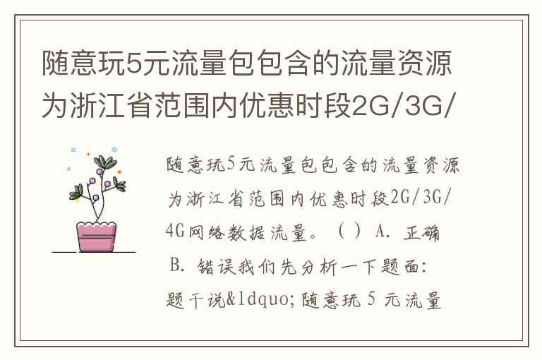 题干说“随意玩 5 元流量包包含的流量资源为浙江省范围内优惠时段 2G/3G/4G 网络数据流量”。