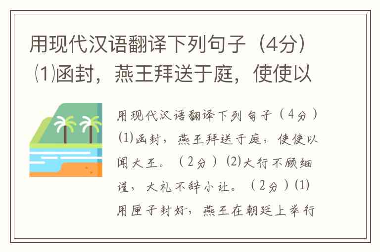 用现代汉语翻译下列句子(4分) ⑴函封,燕王拜送于庭,使使以闻大王。(2分) ⑵大行不顾细谨,大礼不辞小让。(2分)