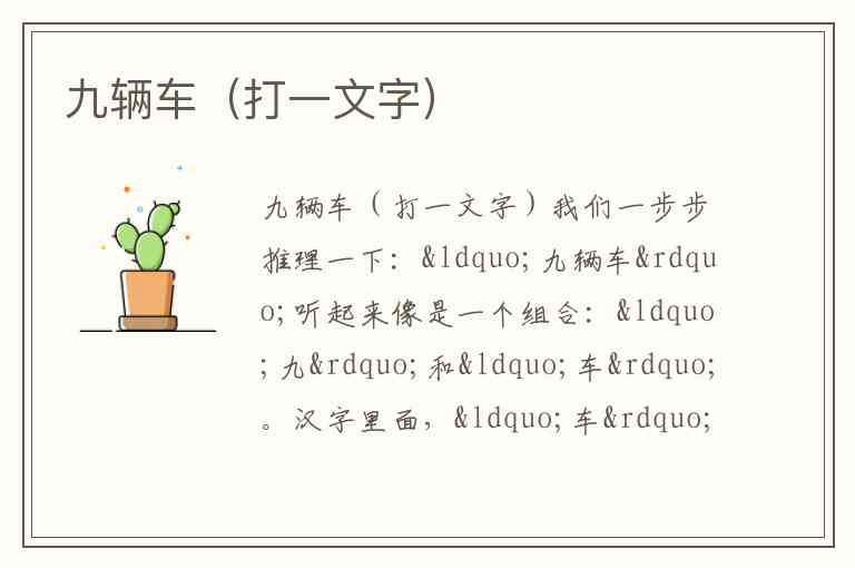 九辆车(打一文字)