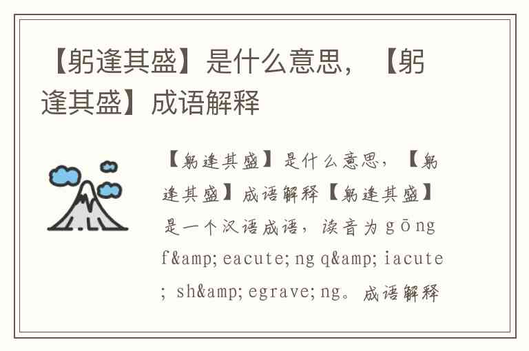 【躬逢其盛】是一个汉语成语,读音为 gōng féng qí shèng。