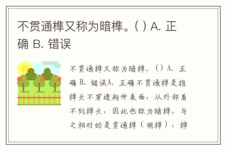 不贯通榫又称为暗榫。( ) A. 正确 B. 错误
