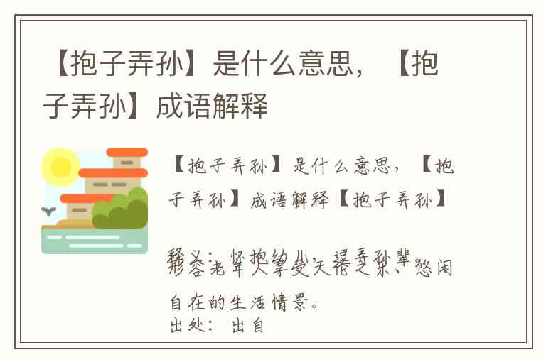 释义:怀抱幼儿,逗弄孙辈。形容老年人享受天伦之乐、悠闲自在的生活情景。
