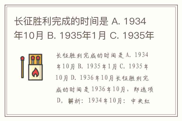 长征胜利完成的时间是 A. 1934年10月 B. 1935年1月 C. 1935年10月 D. 1936年10月
