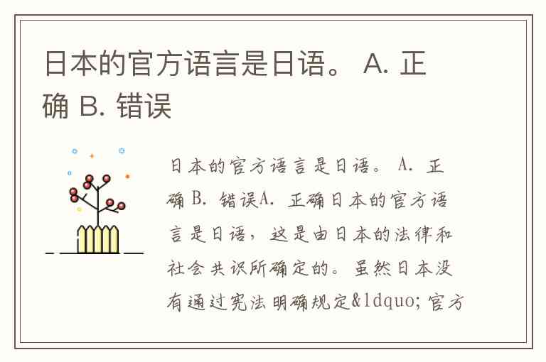 日本的官方语言是日语。 A. 正确 B. 错误