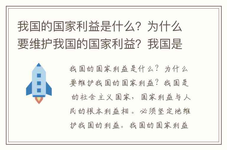 我国的国家利益是什么?为什么要维护我国的国家利益?我国是 人民民主专政 的社会主义国家,国家利益与人民的根本利益相 一致。必须坚定地维护我国的利益。我国的国家利益主要包括: 国家主权、安全、发展 利益。我国在维护自身利益的同时,尊重他国 正当 的国家利益,维护各国人民的 共同利益。