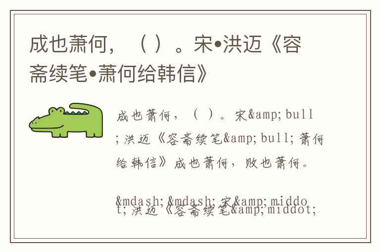 成也萧何,( )。宋•洪迈《容斋续笔•萧何给韩信》