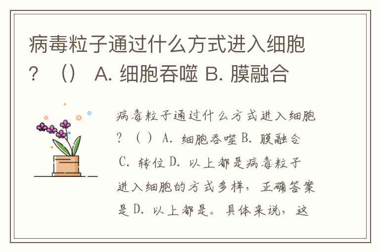 病毒粒子通过什么方式进入细胞?() A. 细胞吞噬 B. 膜融合 C. 转位 D. 以上都是