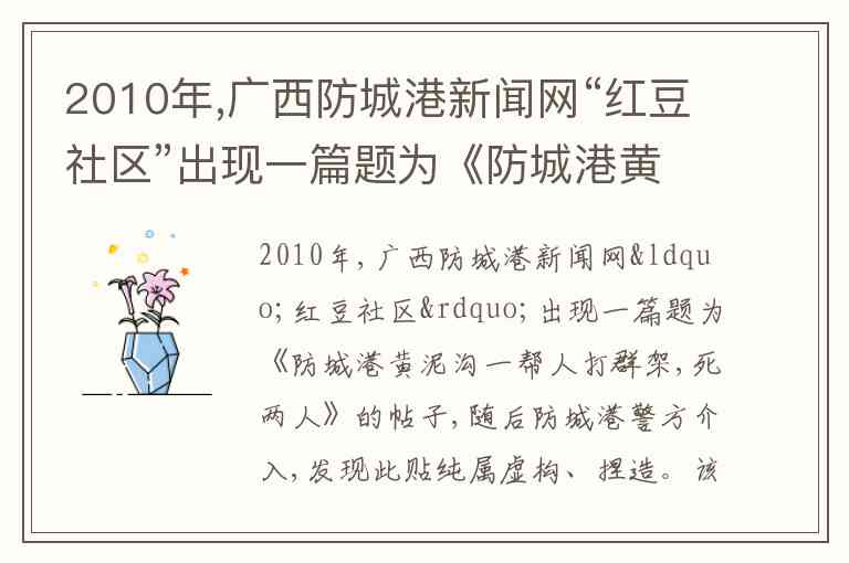 2010年,广西防城港新闻网“红豆社区”出现一篇题为《防城港黄泥沟一帮人打群架,死两人》的帖子,随后防城港警方介入,发现此贴纯属虚构、捏造。该虚假信息发布人应受到()处理。 A. 民法 B. 公司法 C. 刑法 D. 治安管理处罚条例