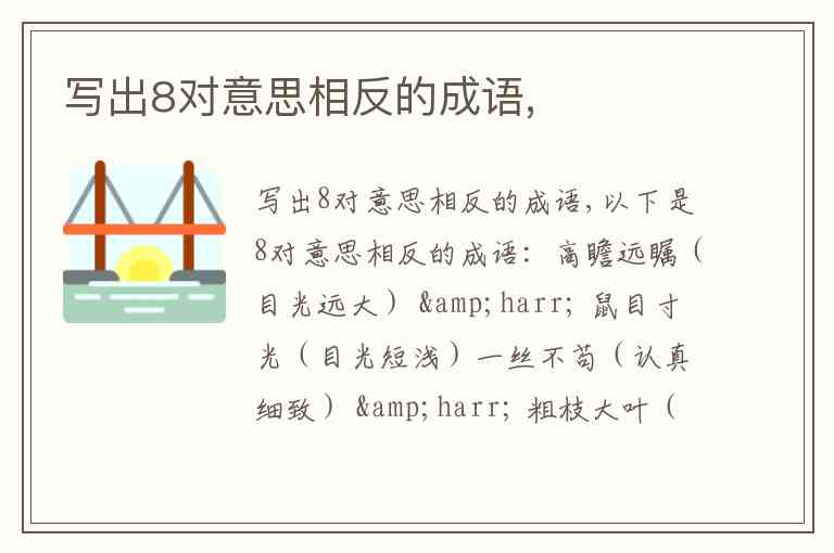 - 写出8对意思相反的成语,