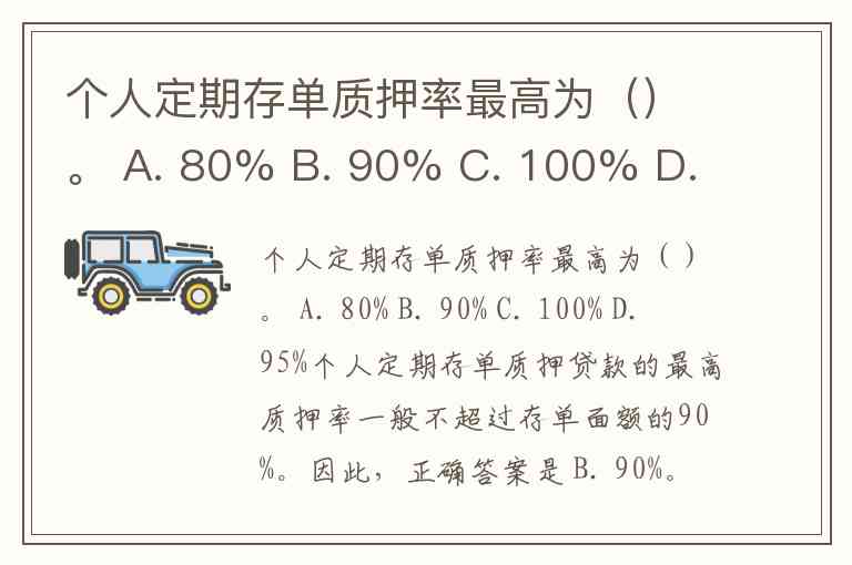 个人定期存单质押率最高为()。 A. 80% B. 90% C. 100% D. 95%
