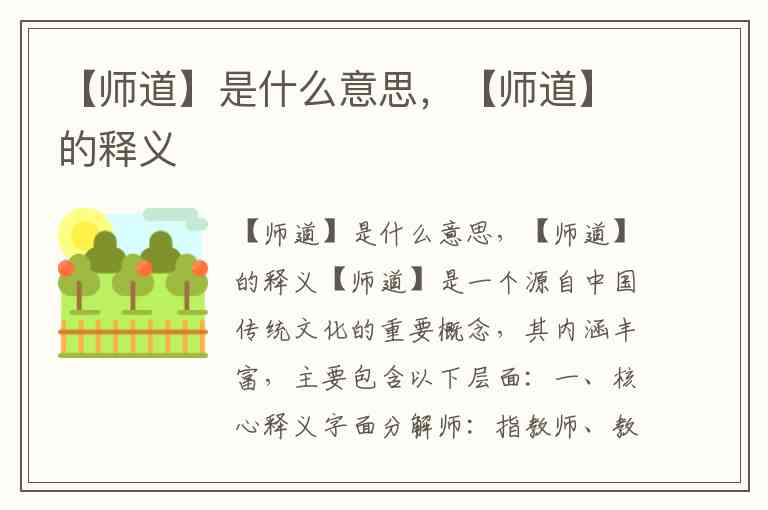 【师道】是一个源自中国传统文化的重要概念,其内涵丰富,主要包含以下层面: