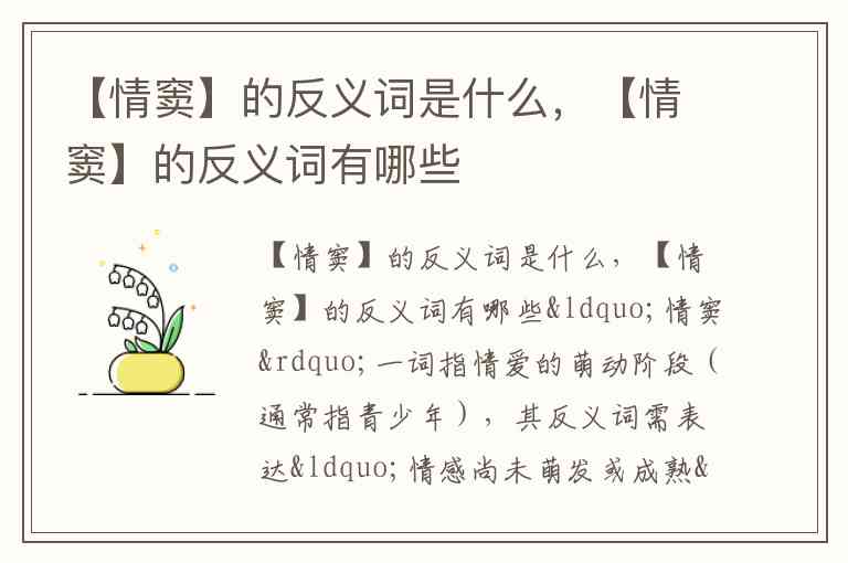 【情窦】的反义词是什么,【情窦】的反义词有哪些