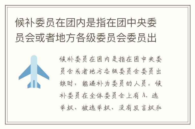 候补委员在团内是指在团中央委员会或者地方各级委员会委员出缺时,能递补为委员的人员。候补委员在全体委员会上有 A. 选举权、被选举权、没有发言权和表决权 B. 发言权、没有选举权、被选举权和表决权 C. 选举权、被选举权和表决权