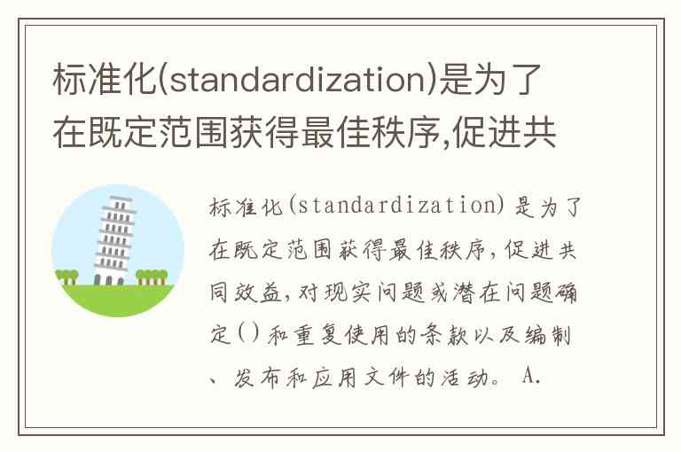 标准化活动的核心目的是获得最佳秩序和共同效益,其本质在于为各种活动或其结果制定 “共同使用和重复使用” 的条款,因此选项 A 最符合定义。