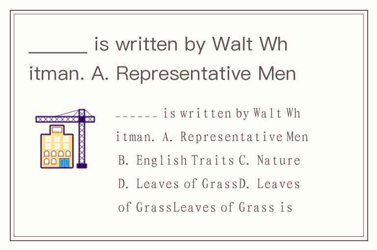 ______ is written by Walt Whitman. A. Representative Men B. English Traits C. Nature D. Leaves of Grass