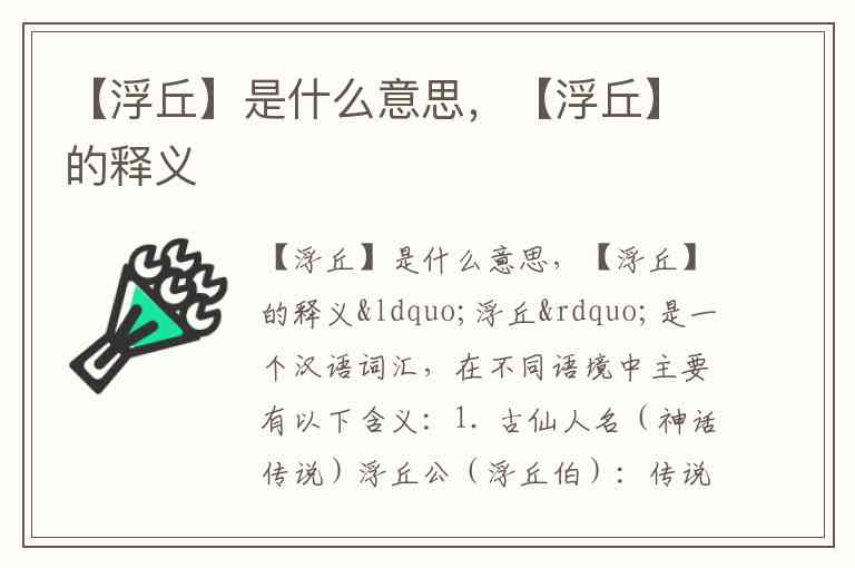 “浮丘”是一个汉语词汇,在不同语境中主要有以下含义: