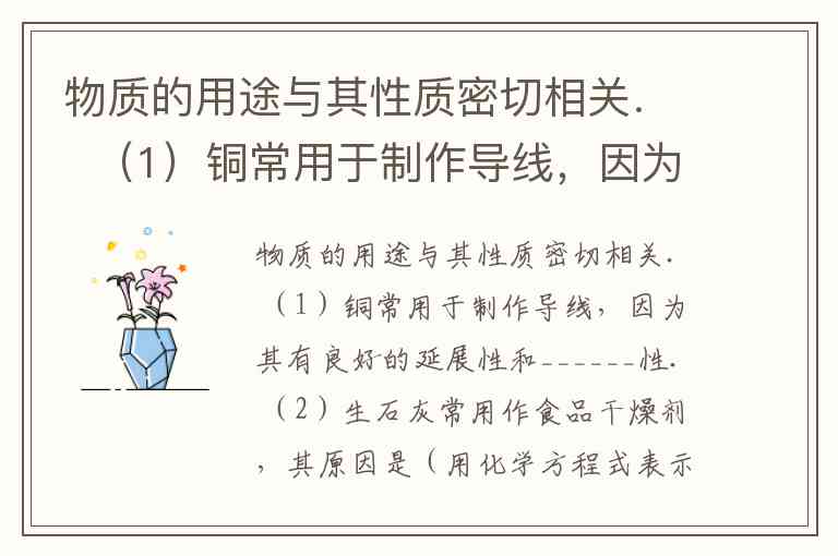物质的用途与其性质密切相关. (1)铜常用于制作导线,因为其有良好的延展性和______性. (2)生石灰常用作食品干燥剂,其原因是(用化学方程式表示)______. (3)氢氧化钙常用作建筑材料,因为其吸收二氧化碳会变成坚固的______. (4)碳酸氢钠可用于治疗胃酸(主要成分是盐酸)过多,其原因是(用化学方程式表示)______. (5)硅是信息技术的关键材料.高温下氢气与四氯化硅(SiCl4)反应可制得高纯度的硅,同时生成氯化氢.该反应的化学方程式为______.