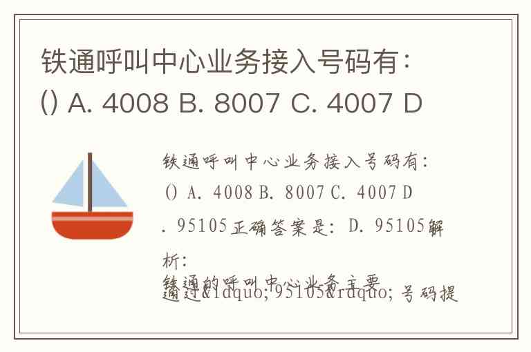 铁通呼叫中心业务接入号码有:() A. 4008 B. 8007 C. 4007 D. 95105