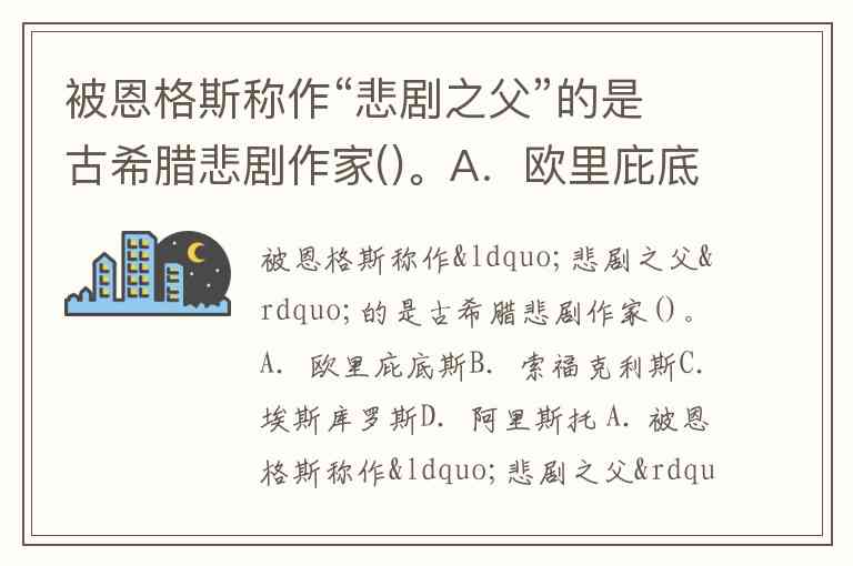 被恩格斯称作“悲剧之父”的是古希腊悲剧作家()。A.欧里庇底斯B.索福克利斯C.埃斯库罗斯D.阿里斯托 A. 被恩格斯称作“悲剧之父”的是古希腊悲剧作家( )。 A.欧里庇底斯 B. 索福克利斯 C. 埃斯库罗斯 D. 阿里斯托芬