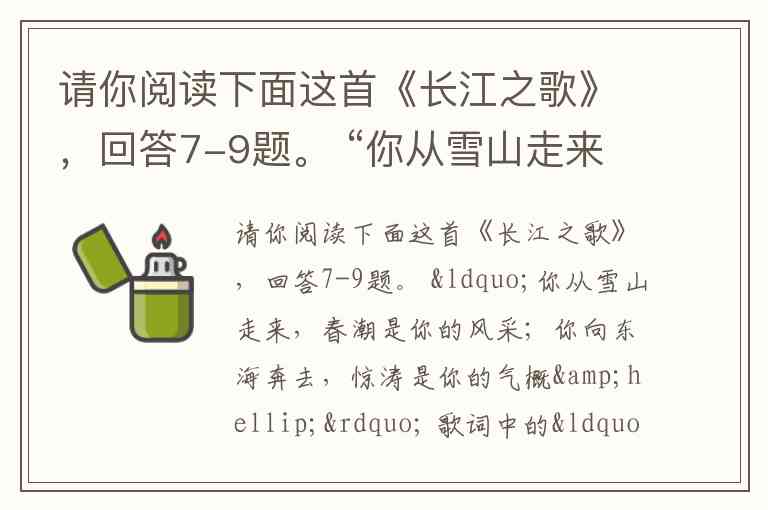 请你阅读下面这首《长江之歌》,回答7-9题。 “你从雪山走来,春潮是你的风采;你向东海奔去,惊涛是你的气概…” 歌词中的“雪山”指的是( ) A. 冈底斯山脉 B. 横断山脉 C. 巴颜喀拉山脉 D. 唐古拉山脉