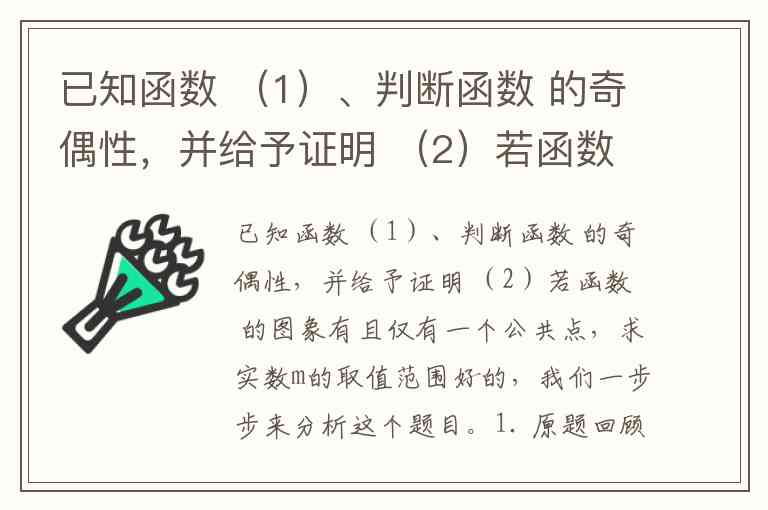 (因为题中写“已知函数 (1)、判断函数 的奇偶性,并给予证明”,这里括号可能丢失了函数表达式,但常见此类题第一问是 f(x)=x+x1 的奇偶性判断,第二问是与某个函数图像有一个公共点,可能是 y=m 水平线,也可能是其他函数,但常考“水平线 y=m 与 f(x) 图像只有一个公共点”。这里我推测第二问是: