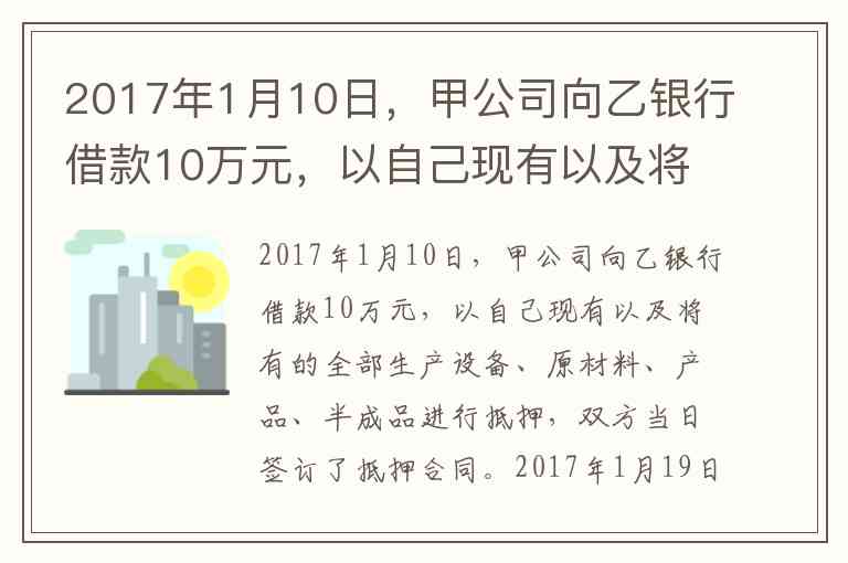 2017年1月10日:甲公司向乙银行借款10万元,并以“现有及将有”的生产设备、原材料、产品、半成品抵押,当天签订抵押合同。