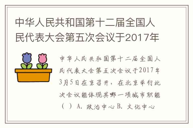 中华人民共和国第十二届全国人民代表大会第五次会议于2017年3月5日在京召开,在北京举行此次会议能体现其哪一项城市职能( ) A. 政治中心 B. 文化中心 C. 国际交往中心 D. 工业中心