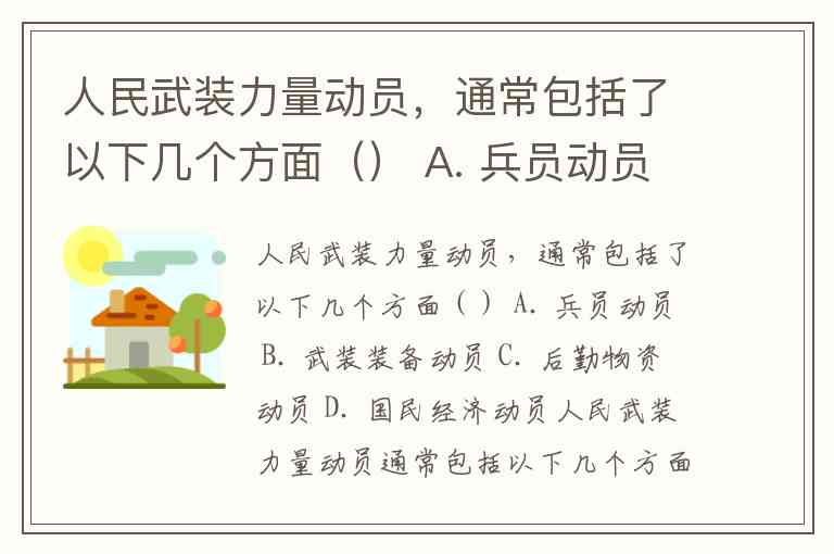 建议结合具体教材或考题的上下文进行判断。 在大多数标准表述中,人民武装力量动员主要指直接与武装力量相关的动员,即前三个选项。